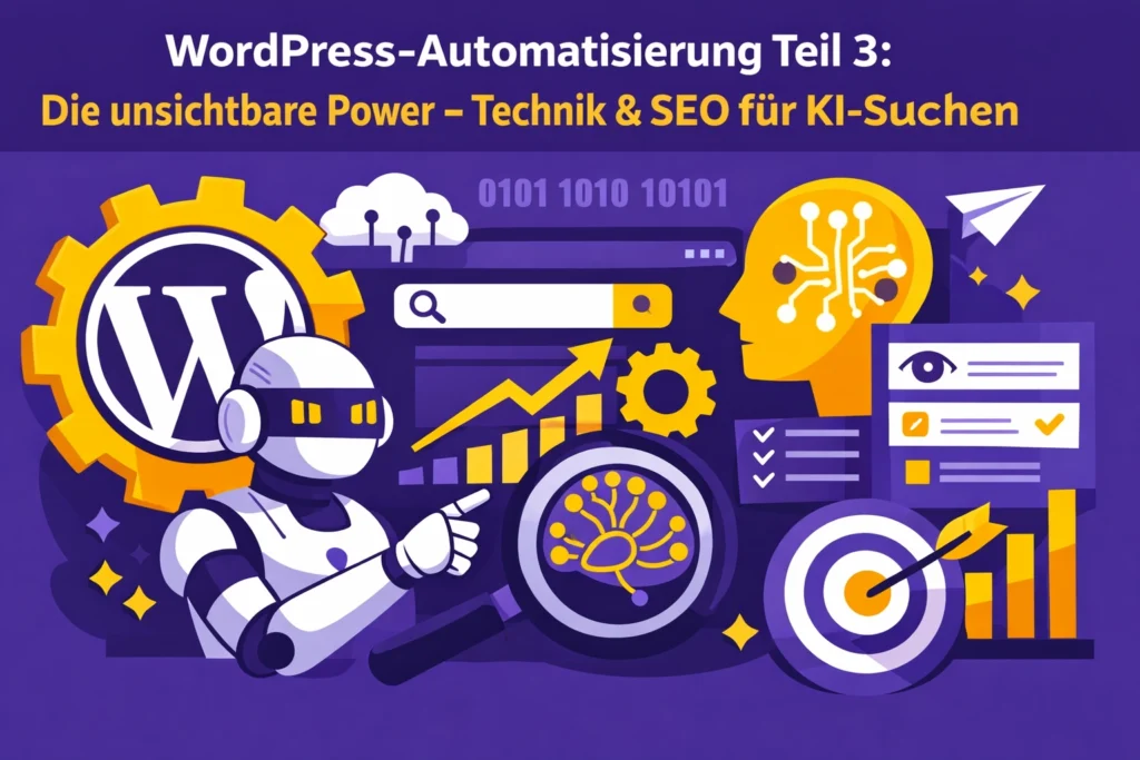 Die Welt der Suche verändert sich radikal. Während wir uns jahrelang darauf konzentriert haben, Google-Bots mit Keywords zu füttern, treten nun neue Akteure auf den Plan: KI-basierte Suchmaschinen wie ChatGPT (Search), Perplexity und Googles eigene Gemini-Integrationen. Für Unternehmen in Sachsen bedeutet das: Wer heute nicht technisch aufrüstet, wird für die digitalen Assistenten von morgen unsichtbar. In diesem dritten Teil unserer Serie zur WordPress-Automatisierung zeigen wir Ihnen, wie Sie die „unsichtbare Power“ Ihrer Website entfesseln.
